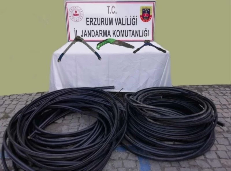 Erzurum’un Tortum ilçesinde haberleşme ve enerji nakil kablolarını çalan 4 kişi suçüstü yakalandı.