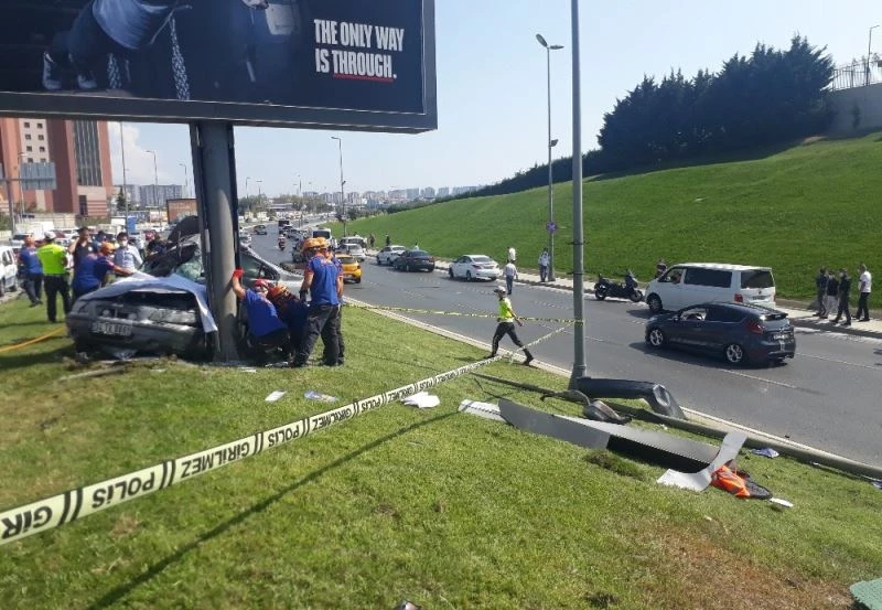 Bakırköy’de sür’atli bir şekilde ilerleyen araç sürücü direksiyon hakimiyetini kaybederek yol kenarında bulunan reklam panosuna çarptı. Sürücü olay yerinde hayatını kaybederken, bölgede trafik yoğunluğu oluştu.