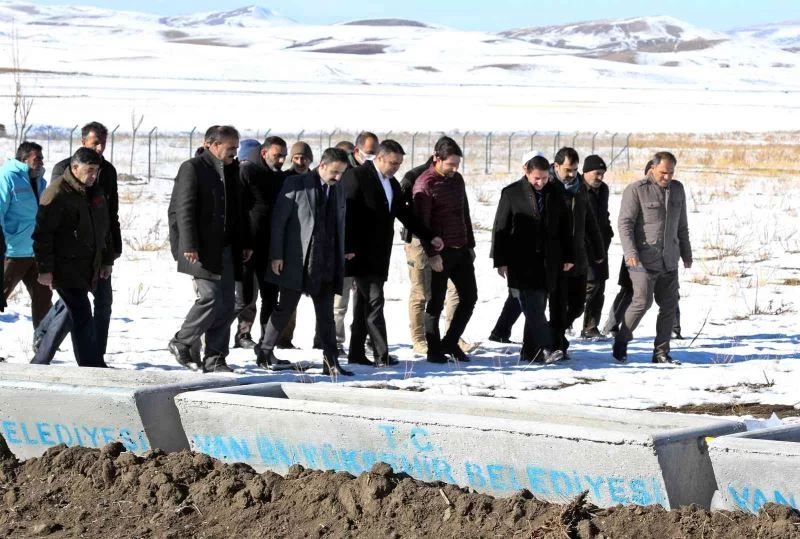 Projeyi incelemek üzere bölgeye giden Büyükşehir Belediyesi Genel Sekreteri Mehmet Fatih Çelikel, Saray Kaymakamı Yunus Ataman ve Kırsal Hizmetler Daire Başkanı Yusuf Altun, sıvatlara ilk suyu verdi.