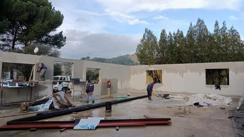Köşk Belediyesi tarafından Baklaköy Mahallesi’nde yapımı devam eden mahalle düğün salonunda sona gelindi. Önümüzdeki düğün sezonuna yetiştirilmesi amacıyla çalışmalar aralıksız devam ederken, düğün salonu yapımında yüzde 85 oranında sona yaklaşıldı. ‘Her şey Köşk için’ sloganıyla hizmetlerine devam ettiklerini ifade eden Köşk Belediye Başkanı Nuri Güler; “Mahalle düğün salonu yapım çalışmaları aralıksız devam ediyor. Baklaköy Mahallemizde bulunan düğün salonunda ekiplerimiz, sıvama ve elektrik tesisatı döşeme çalışmasını tamamladı. Bir yandan da trapez saç çatı kaplama çalışmasını sürdürüyor. Ekiplerimiz, akabinde boya, badana işlerini tamamlayarak Baklaköy Düğün Salonu’nu en kısa zamanda Baklaköylü hemşehrilerimizin hizmetine sunacağız” dedi.