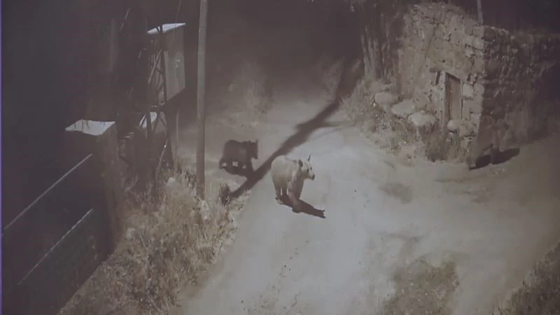 Bal yemek için köye inen ayılar, kameralara yansıdı