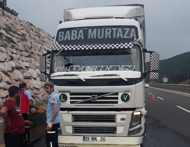 Bilecik’te seyir halindeki bir tırın balatalarından bir anda çıkan duman, sürücüyü korkuttu.