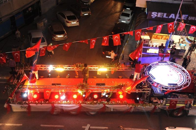 Balçova Belediyesi tarafından özel olarak süslenen aracın üzerindeki bir Efe, Mustafa Kemal Atatürk’ü canlandırarak Ulu Önder’in çok sevdiği Sarı Zeybek türküsü eşliğinde vatandaşları selamladı. Balçova’nın tüm ana caddelerindeki kutlamalara on binlerce vatandaş balkonlarından eşlik etti.