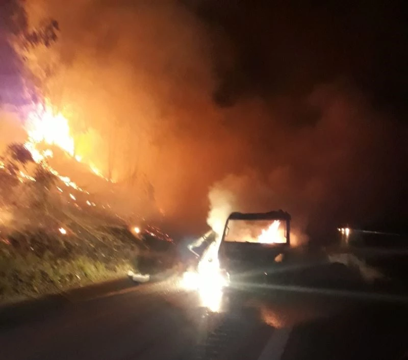 Olay, Aydın - İzmir otoyolu üzerinde meydana geldi. Edinilen bilgiye göre M.S. idaresindeki 09 ABD 241 plakalı balık yüklü kamyonet henüz bilinmeyen bir nedenle alev aldı. Araçtan çıkan alevleri fark eden araç sürücüsü aracını yolun sağına çekerek araçtan dışarı çıktı. Araç sürücüsü durumu 112 Acil Çağrı Merkezi’ne bildirdi. İhbar üzerine bölgeye Aydın Büyükşehir Belediyesi İtfaiye Daire Başkanlığı ekipleri sevk edildi. Bir anda büyüyen alevler aracın etrafını sararken yol kenarında bulunan ormanlık alana da sıçradı. Kısa sürede olay yerine gelen itfaiye ekipleri, alevleri kontrol altına alırken, ormanlık alana sıçrayan alevleri de büyümeden söndürdü. Meydana gelen yangında araç kullanılamaz hale gelirken, ekipler yangının çıkış nedeni ile ilgili inceleme başlattı.