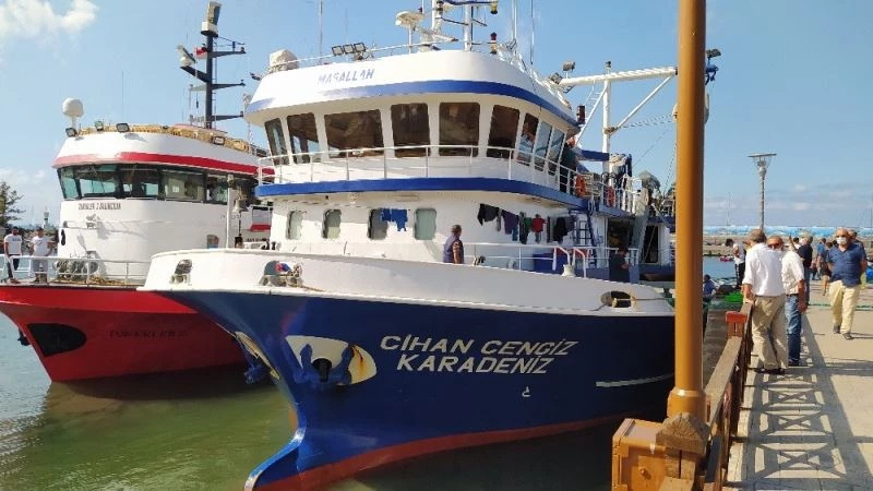 Balıkçı barınağına gelen balıkçı tekneleri ağlarını onardılar