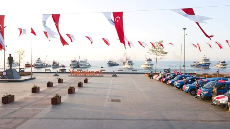 Karada resmi araçlar, denizde balıkçılar ve evlerinde vatandaşlar hep birlikte coşkulu bir şekilde bayram kutlamasına katıldı. Yakakent’in köklü bir deniz kültürü olduğunu bir kez daha gösteren Liman Başkanlığına bağlı balıkçı tekneleri de törene denizden katılım sağladı. Denizin 20 metre altında dalgıçlar tarafından Türk bayrağı açıldı. Yakakentliler balkonlardan 19.19’da okunan İstiklal Marşı’nı coşku ile söyledi.
