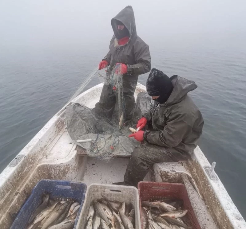 Suya attıkları ağları bile buz tutan balıkçılar, dondurucu soğuktaki su üzerinde saatlerce uğraş verdikten sonra yakalayabildikleri az miktarda balıkla evlerine dönüyorlar.