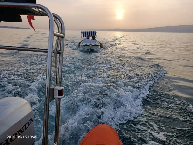 Balıkesir’in Burhaniye ilçesi açıklarında arıza yapan fiber teknede mahsur kalan 2 kişi, Sahil Güvenlik tarafından kurtarıldı.