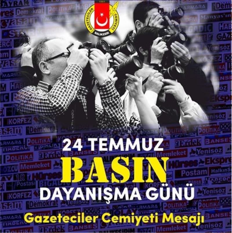 Balıkesir Gazeteciler Cemiyeti, "24 Temmuz Basın Bayramı" mesajında, gerçek anlamda halkın gözü, kulağı, sesi olan yerel medyaya sahip çıkılması ve sosyal paylaşım ağlarını operasyon merkezlerine dönüştüren vandallara karşı ortak mücadele çağrısında bulundu. BGC Bu kapsamda Paşa Konağında “Balıkesir Manşetler Sergisi” açılışı yapılacak.