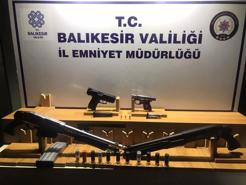 Balıkesir İl Emniyet Müdürlüğü Asayiş Şube Müdürlüğü görevlilerince genel güvenliği ve asayişi sağlamak amacıyla Balıkesir İl Merkezi, Burhaniye, Edremit, Erdek, ve Havran İlçelerinde 08.04.2021 tarihinde yapılan çalışmalarda 6 aranan şahıs yakalanırken adli makamlara sevk edilenlerden 2 şahıs tutuklandı. Yapılan aramalarda; 6 adet ateşli silah ve bu silahlara ait 10 adet fişek ele, 2 adet ruhsatsız tüfek ve 22 adet kartuş, 2 adet kurusıkı tabanca ele geçirildi.