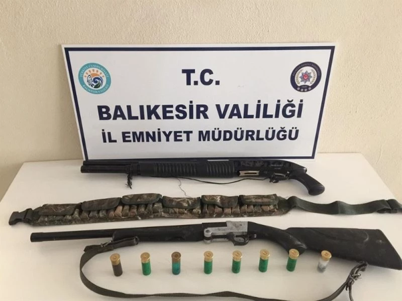 Balıkesir İl Emniyet Müdürlüğünce il ve ilçeler genelinde yapılan çalışmalarda; Balıkesir İl Merkezinde, 1 adet Sarsılmaz ateşli silah ve bu silaha ait 6 fişek, 1 adet Cal 765 ibareli ateşli silah ve bu silaha ait 7 adet fişek, 1 adet ruhsatsız Av tüfeği, Ayvalık İlçesinde, 1 adet Blow kurusıkı tabanca ve bu tabancaya ait 5 adet fişek, Bandırma İlçesinde, 1 adet 7,65 mm çaplı ateşli silah ve bu silaha ait 9 adet fişek, Gömeç İlçesinde,1 adet magnum pompalı tüfek ve bu tüfeğe ait 8 adet fişek, 1 adet Prenses marka Av Tüfeği ele geçirildi. Yakalanan şahıslar hakkında kanuni işlem uygulandı.