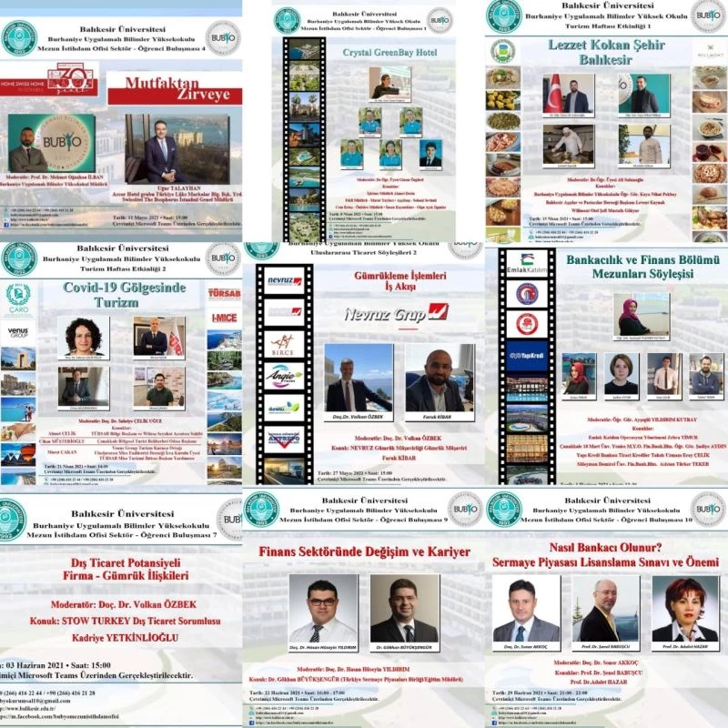 Bu doğrultuda projenin bir kolu olarak Burhaniye Uygulamalı Bilimler Yüksekokulu Müdürü ve ofis koordinatörü Prof. Dr. M. Oğuzhan İlban tarafından BUBYO Mezun İstihdam Ofisi faaliyete geçirilirken, bu kapsamda pandemi döneminde öğrencilerin sektörden haberdar olmalarını sağlandı. Bu kapsamda, öğrenci sektör buluşmaları adı altında birçok etkinlik gerçekleştirdi. Turizm İşletmeciliği, Bankacılık ve Finans ve Uluslararası Ticaret Programlarında 10 farklı etkinliğin düzenlendiği belirtildi. Konuyla ilgili olarak bir açıklama yapan Üniversite Rektörü ve Mezun İstihdam Ofisi Koordinatörü Prof. Dr. İlter Kuş, “Öğrencilerimizin sektörün önde gelen isimlerinden sektör ve kariyer planlama hakkında bilgileri ilk ağızdan erişim sağlaması bizim açımızdan oldukça önemli. Üniversite bünyesinde aldıkları nitelikli eğitim sonucunda, öğrencilerimiz sektör temsilcilerine kendilerini başarılı bir şekilde ifade ederek, talep ve beklentilerini aktarma fırsatı buldular. Dolayısıyla gerçekleştirilen bu etkinliklerin öğrencilerimize fayda sağlayacağını düşünüyoruz ve bu düşünce ile çalışmalarımıza devam ediyoruz. BUBYO Müdürümüz ve Mezun İstihdam Ofisi Koordinatörümüz Prof. Dr. Mehmet Oğuzhan İlban hocamızı da kutluyorum. Tüm birimlerimizin öğrencilerimize vizyon ve istihdam sağlayacak çalışmalarla üniversitemize katkı sağlamasını istiyoruz. Diğer birimlerimizin katkılarıyla da Türkiye de örnek gösterilen bu projemizin yaygın etkisinin artacağını düşünüyoruz. Şehriyle bütünleşen üniversite olarak bizim öğrencimiz mezun olana kadar değil, mezun olduktan sonra da öğrencimizdir ilkesiyle çalışmalarımıza hız kesmeden devam edeceğiz” dedi.