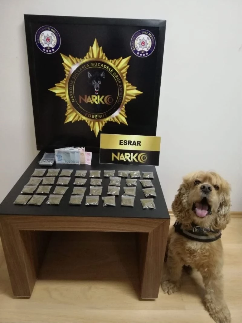 Burhaniye ilçesinde Balıkesir Narkotik Suçlar ile Mücadele Şube Müdürlüğü ile Edremit Narkotik Suçlar ile Mücadele Grup Amirliği tarafından yapılan müşterek uyuşturucu operasyonunda 136 gram toz esrar ele geçirildi. Operasyona Narkotik Köpeği ’Eko’ da destek verdi.