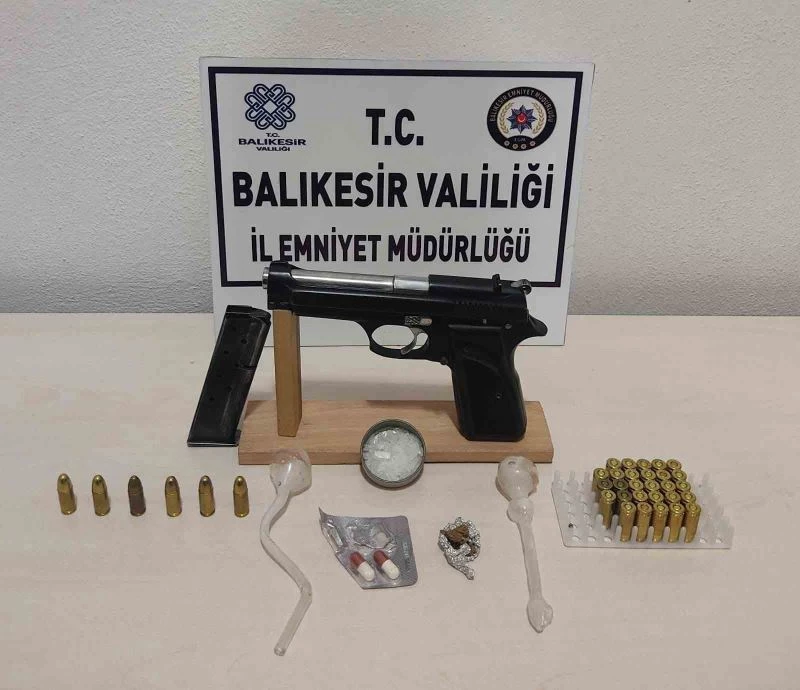 Balıkesir İl Emniyet Müdürlüğü Asayiş Şube Müdürlüğü ekipleri genel güvenliği ve asayişi sağlamak amacıyla Altıeylül, Ayvalık, Bandırma, Burhaniye, Edremit, Gönen, Kepsut ve Susurluk ilçelerinde yapılan çalışmalarda çeşitli suçlardan aranan 22 şahıs gözaltına alınırken, adli makamlara sevk edilen 10 şahıs tutuklandı. Yapılan aramalarda 4 adet ruhsatsız tabanca ve 69 adet fişek ve 2 adet ruhsatsız tüfek ele geçirildi.