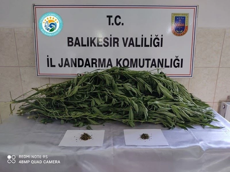 Balıkesir’in Burhaniye ilçesinde jandarma tarafından yapılan çalışma ile 27 kök kenevir ve 12 gram kubar esrar maddesi ele geçirildi.