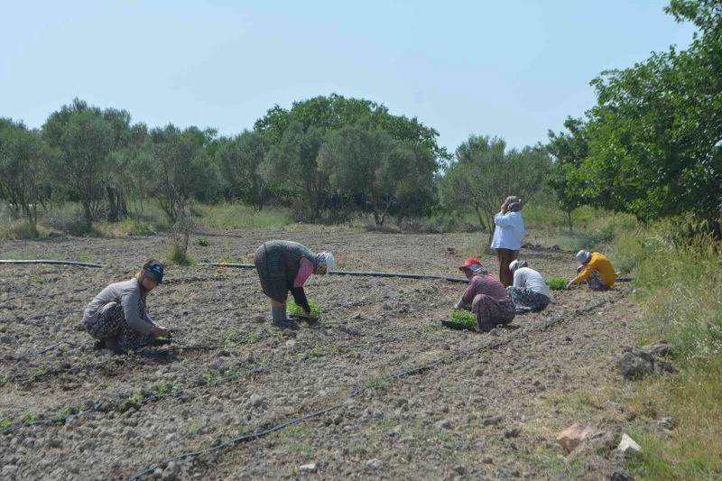 Balıkesir’in Ayvalık ilçesinde ‘şeker otu’ olarak da bilinen 50 bin stevya fidesi toprakla buluşturuldu.
