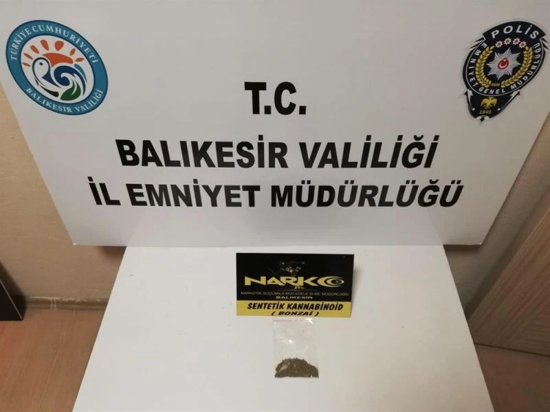 2,20 gram sentetik kannabinoid bonzai, 145 adet sentetik ecza hap ve 2 adet Ecstasy uyuşturucu hap ele geçirildi.