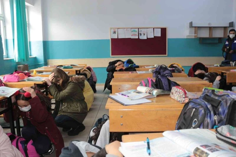 2022 Afet Tatbikat Yılında yapılacak etkinliklere de değinen Vali Şıldak, “İçişleri Bakanlığımıza bağlı AFAD başkanlığı bu konuda pek çok faaliyet planladı ve ülke genelinde 55 bin civarında bir tatbikat olacak. Biz de ilimizde en az bin tatbikat yapmayı planlıyoruz. Bunların bir kısmı daha büyük kapsamda, bir kısmı ise daha küçük, daha eğitime yönelik kısa süreli tatbikatlar olacak. Sizlerin burada bilinç kazanmanız, burada şuurlanmanız, afetlere karşı hazırlıklı olmanız sadece sizi değil, ailenizi, büyüklerimizi, çevrenizdeki arkadaşlarınızı da belki karşılaştığınız bir deprem anında kurtaracaktır, hayatta kalmasını sağlayacaktır. Sınıflarımızda çök-kapan yaptık. Sonra bekledik ve hep beraber planlandığı şekilde sınıflardan tahliye edildik. Bunların hepsi çok önemli, sonra da okulumuzun güvenli bir alanında, bahçede toplandık” ifadelerini kullandı.