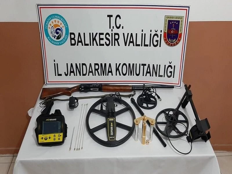 Balıkesir İl Jandarma Komutanlığınca, kültür ve tabiat varlıkları kaçakçılığına yönelik yapılan istihbarı çalışmalar neticesinde, Erdek ilçesinde örgütlü olarak kültür ve tabiat varlığı kaçakçılığı ve izinsiz kazı yapıldığı tespit edildi. Tespit sonrası yapılan operasyonla İ.E., F.Ç., H.Ç., F.S. ve E.D. isimli şüphelilerin kazı yaptıkları alanda ve ikamet adreslerinde arama yapıldı. Yapılan aramalarda, 3 adet lahit, 1 adet av tüfeği, 1 adet dedektör ve bu dedektöre ait 5 adet malzeme ele geçirildi. Cumhuriyet Savcılığının talimatı ile ele geçirilen malzemelere el konularak, şüpheliler hakkında adli tahkikat başlatıldı.