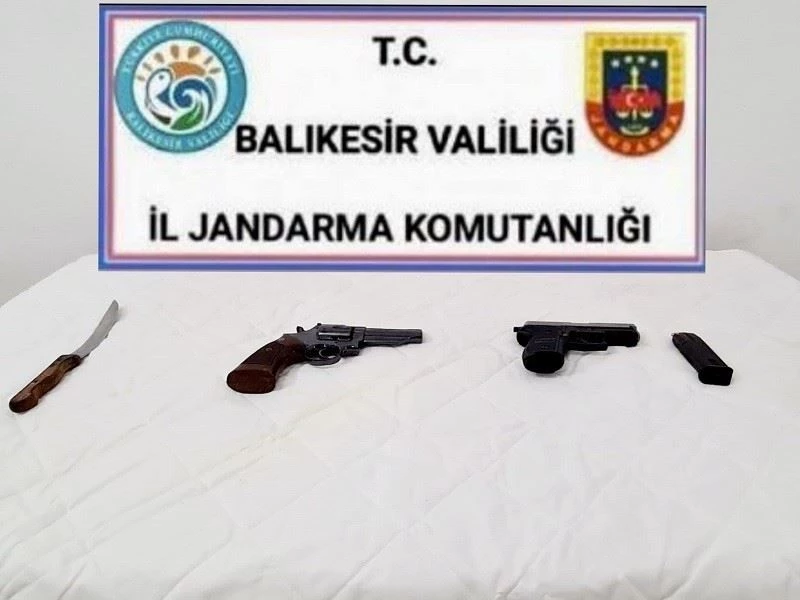 Balıkesir İl Jandarma Komutanlığı ekipleri genel güvenliği ve asayişi sağlamak amacıyla Ayvalık, Altıeylül, Bandırma, Edremit, Erdek, Gönen, Gömeç, İvrindi, Karesi, Kepsut ve Marmara ilçelerinde yapılan çalışmalarda ve yapılan yol aramalarında; çeşitli suçlardan aranan 13 şahıs gözaltına alınırken, 3 adet tabanca ve 1 bıçak ele geçirildi.