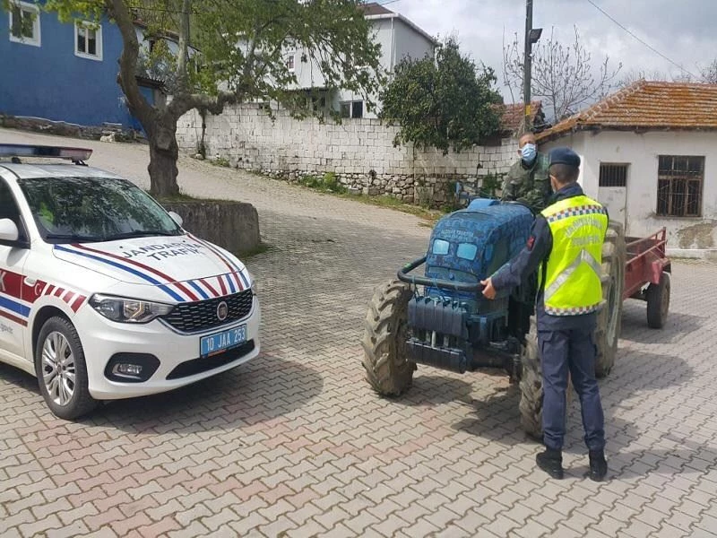 Balıkesir’de jandarma ekipleri huzuru sağlamak için il genelinde asayiş ve trafik timleri de tarım araçlarına uygulama yaptı. Jandarma ekipleri asayiş uygulamalarında çeşitli suçlardan aranan 20 şahsı göz altına aldı. Jandarma Trafik Timleri 60 tarım aracına 38 bin TL. idari para cezası uygularken, 28 tarım aracını trafikten men etti.