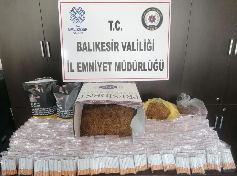 Balıkesir İl Emniyet Müdürlüğü Kaçakçılık ve Organize Suçlarla Mücadele Şube Müdürlüğü görevlilerince “Sigara Kaçakçılığının” önlenmesine yönelik Balıkesir İl Merkezinde yürütülen çalışmalar kapsamında; 1 şüpheli şahısla ilgili yapılan kontrollerde; 5 bin 200 adet dolu makaron 11 kg. kıyılmış tütün ele geçirildi. Yakalanan şüpheli şahıs hakkında “ 5607 Sayılı Kanuna Muhalefet” suçundan adli işlem yapıldı.