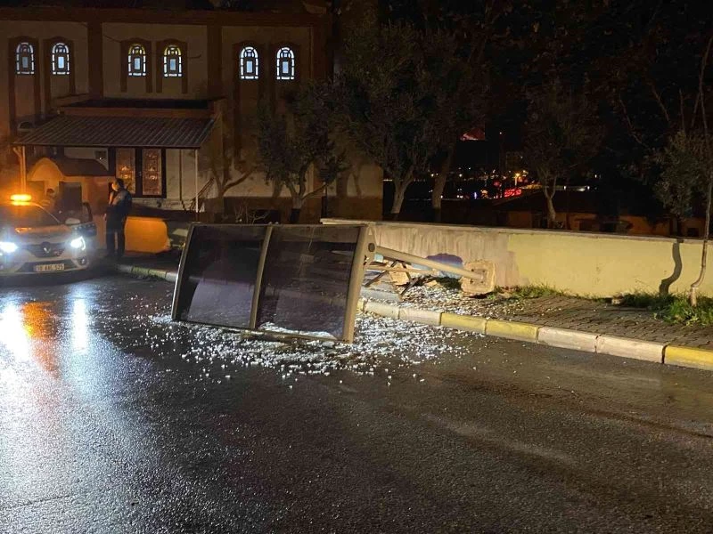 Balıkesir’de gündüz saatlerinde orta şiddette esen lodos, gece etkisini arttırdı. Sert esen lodosa ağaçlar dayanamadı. Bazı evlerin çatıları uçarken, bir otobüs durağı ise yıkıldı. Maddi zararla atlatılan lodos fırtınasında camiden anonslar yapılarak vatandaşların evde kalması istendi.