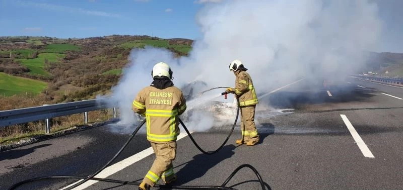 Balıkesir’in Susurluk ilçesinden geçen İstanbul-İzmir otobanında meydana gelen araç yangını itfaiye ekiplerince söndürüldü.