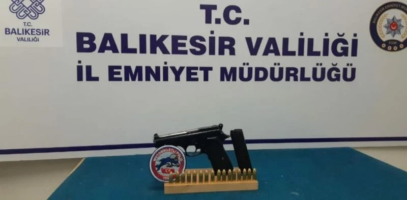 Balıkesir İl Emniyet Müdürlüğü Asayiş Şube Müdürlüğü görevlilerince genel güvenliği ve asayişi sağlamak amacıyla Balıkesir İl Merkezi, Ayvalık, Burhaniye, Erdek ve Edremit İlçelerinde 14.04.2021 tarihinde yapılan çalışmalarda çeşitli suçlardan aranan 14 aranan şahsı gözaltına alırken, adli makamlara sevk edilen 1 şahıs tutuklandı. Yapılan aramalarda; 3 adet ruhsatsız ateşli silah ve bu silahlara ait 20 adet fişek, 1 adet ruhsatsız tüfek ve buna ait 28 adet kartuş, 1 adet ruhsatsız 7,65 mm ateşli silah, 1 adet ruhsatsız ateşli silah, bu silaha ait 15 adet fişek, 1 adet ruhsatsız 7,65 mm ateşli silah, bu silaha ait 5 adet fişek, 1 adet ruhsatsız tüfek ve buna ait 28 adet kartuş ele geçirildi.