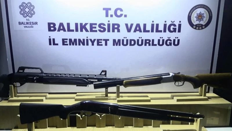 Polis ekipleri Balıkesir il merkezi ve Edremit ilçelerinde yaptığı asayiş uygulamalarında 2 aranan şahsı yakalarken, 6 ruhsatsız av tüfeği, 2 kurusıkı tabanca ve bu silahlara ait fişek ele geçirdi.
