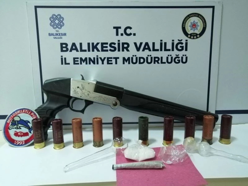 Balıkesir Emniyet Müdürlüğü Asayiş Şube Müdürlüğü ekipleri, genel güvenliği ve asayişi sağlamak amacıyla şehir merkezi, Ayvalık, Bandırma, ve Edremit İlçelerinde yaptıkları huzur operasyonlarında çeşitli suçlardan aranan 8 şahsı gözaltına aldı. Adliyeye sevk edilen zanlılardan 2’si tutuklandı. Yapılan aramalarda; çeşitli marka ruhsatsız 3 adet tüfek ve tüfeklere ait 12 kartuş ele geçirildi.