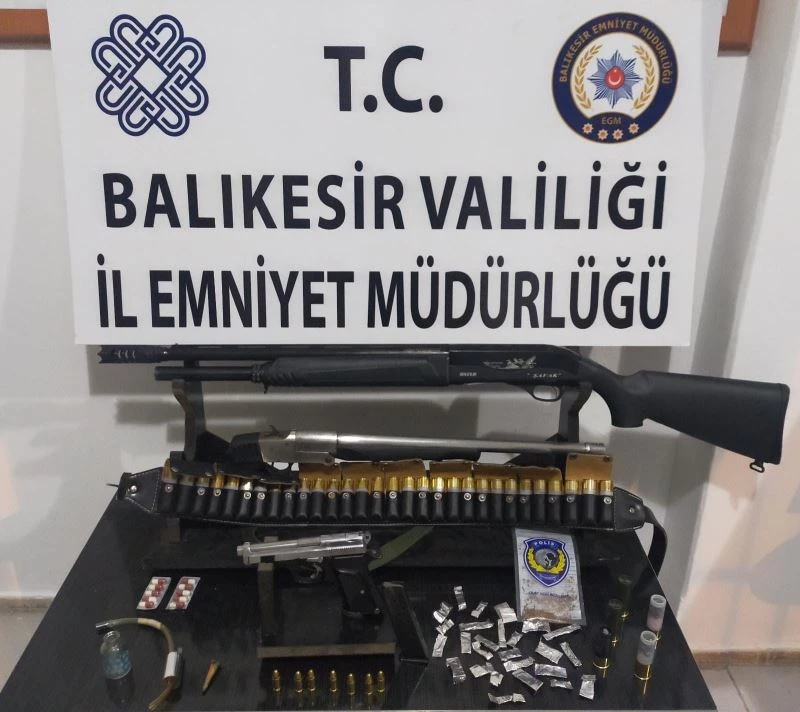 Balıkesir İl Emniyet Müdürlüğü Asayiş Şube Müdürlüğü görevlilerince genel güvenliği ve asayişi sağlamak amacıyla Balıkesir İl Merkezi, Burhaniye, Edremit, Erdek ve Havran İlçelerinde 02.05.2021 tarihinde yapılan çalışmalarda çeşitli suçlardan aranan 12 şahıs yakalanırken ve adli makamlara sevk edilen 2 şahıs tutuklandı. Yapılan aramalarda; 1 adet ruhsatsız ateşli silah ve bu silahlara ait 7 adet fişek, 4 adet ruhsatsız tüfek ve bu tüfeklere ait 49 adet kartuş, 1 adet ruhsatsız ateşli silah ve bu silaha ait 7 adet fişek, 1 adet pompalı tabir edilen ruhsatsız tüfek ve bu tüfeğe ait 21 adet kartuş, 1 adet ruhsatsız tüfek, 1 adet tüfek ve bu tüfeğe ait 13 adet kartuş, 1 adet tek kırma tabir edilen tüfek ve bu tüfeğe ait 15 adet kartuş ele geçirildi.