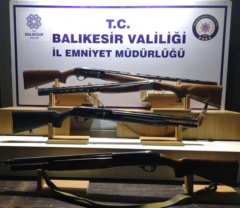 Balıkesir İl Emniyet Müdürlüğü Asayiş Şube Müdürlüğü görevlilerince genel güvenliği ve asayişi sağlamak amacıyla Balıkesir Kent Merkezi ve Edremit İlçesinde 18.04.2021 tarihinde yapılan çalışmalarda çeşitli suçlardan aranan 8şahıs yakalanırken, adli makamlara sevk edilenlerden 1 şahıs tutuklandı. Yapılan aramalarda; 4 adet ruhsatsız ateşli silah ve 8 adet ruhsatsız av tüfek ele geçirildi.