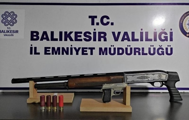 Balıkesir İl Emniyet Müdürlüğü Asayiş Şube Müdürlüğü görevlilerince genel güvenliği ve asayişi sağlamak amacıyla Balıkesir İl Merkezi, Erdek ,Gömeç ve Edremit ilçelerinde yapılan çalışmalarda çeşitli suçlardan aranan 6 şahıs yakalanırken, adli makamlara sevk edilenlerden 1 şahıs tutuklandı. Yapılan aramalarda; 2 ruhsatsız av tüfeği, 8 fişek, 4 ruhsatsız ateşli silah ve bu silahlara ait 18 fişek ve 4 kuru sıkı tabanca ele geçirildi.