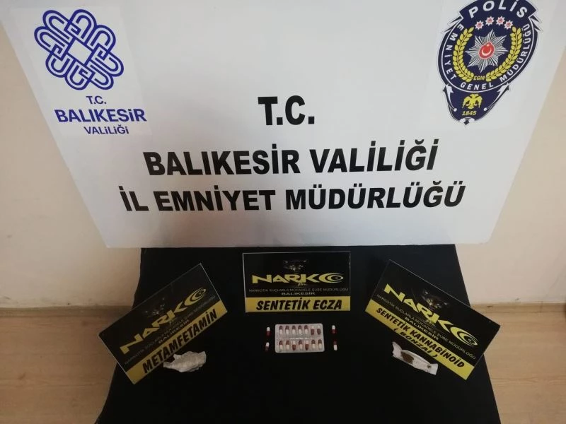 Balıkesir İl Emniyet Müdürlüğü Narkotik Suçlarla Mücadele Şube Müdürlüğü görevlilerince uyuşturucu madde ticareti, kullanımını ve sokak satıcılarının faaliyetlerini önlemeye yönelik olarak 19.06.2021 - 20.06.2021 tarihlerinde Bandırma, Edremit ve Ayvalık İlçelerinde yapılan 16 çalışmada, 20 şüpheli şahıs yakalanırken, şahıslar haklarında yapılan adlî işlemler sonrası serbest bırakıldı. Olaylarla ilgili yapılan aramalarda 6,32 gram metamfetamin, 15,68 gram sentetik kannabinoid, 0,59 gram toz esrar maddesi, 126 adet sentetik ecza hap, 1 adet ecstasy hap, 1 adet kurusıkı tabanca, 1 adet kapsam dışı bıçak, 1 adet uyuşturucu madde içiminde kullanılan ve payp olarak tabir edilen cam aparat ele geçirildi.