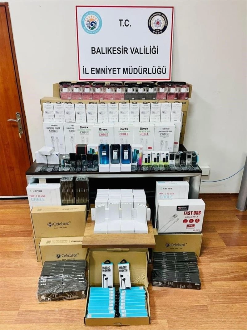 Balıkesir İl Emniyet Müdürlüğü Kaçakçılık ve Organize Suçlarla Mücadele görevlilerince kaçakçılığın önlenmesi yönelik olarak Balıkesir merkezde bir şüpheli şahısın işyeri, araç ve ikametinde yapılan aramada; 32 adet S. Tuşlu telefon, 4 adet Tw.. marka tuşlu telefon, 3 adet R.. 9 Androit cep telefonu, 260 adet araç şarj aleti, 690 adet USB kablo 101 adet kulaklık ve 35 adet Powerbank ele geçirilirken; şüpheli şahıs hakkında adli işlem başlatıldı.
