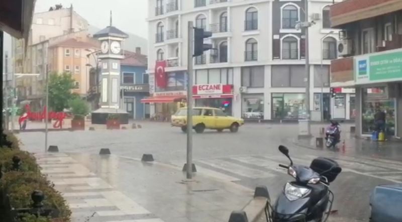 Balıkesir il merkezinde akşam saatlerinde başlayan sağanak yağış, Sındırgı ilçesinde doluya döndü.