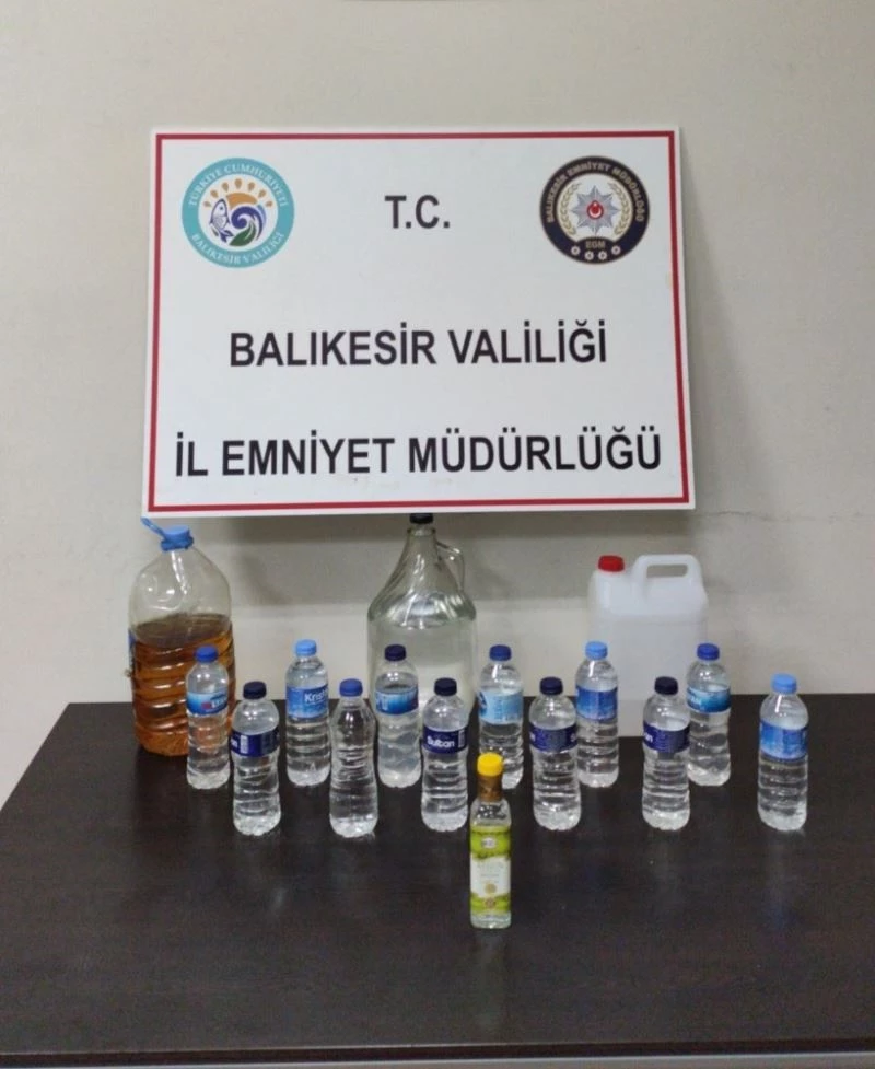 Edinilen bilgiye göre, Balıkesir İl Emniyet Müdürlüğüne bağlı ekipler T.K. adlı şahsın sahte alkol üretimi yaptığı bilgisi alması üzerine Cumhuriyet Savcısından alınan arama kararına istinaden T.K.’nın ikametinde yapılan aramada; 11 adet 0.5 ml şişe içerisinde rakı olduğu değerlendirilen sahte alkol, 1 adet 0.5 ml şişe içerisinde vodka olduğu değerlendirilen sahte alkol, 1 adet 5 lt şişe içerisinde 5 lt viski olduğu değerlendirilen sahte alkol,