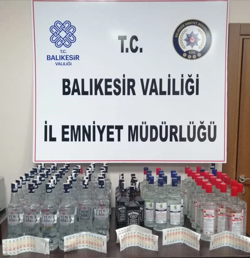 Balıkesir İl Emniyet Müdürlüğü Kaçakçılık ve Organize Suçlarla Mücadele Şube Müdürlüğü görevlilerince “Alkol Kaçakçılığının ve Alkol Zehirlenmelerinin” önlenmesine yönelik Balıkesir İl Merkezinde yürütülen çalışmalar kapsamında; 1 şahsın ikametinde yapılan kontrollerde; 46 adet 1 litrelik sahte rakı, 35 adet 1 litrelik etil alkol, 9 adet 70 cc sahte viski ve 62 adet sahte bandrol ele geçirildi. Yakalanan kaçak içkiler el konulurken, 1 şüpheli şahıs yakalanarak gözaltına alındı.