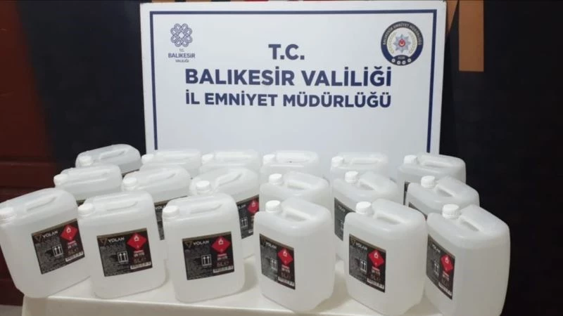 Balıkesir’de yapılan sahte içki operasyonunda 2 kişi gözaltına alınırken, 90 litre etil alkol ele geçirildi.