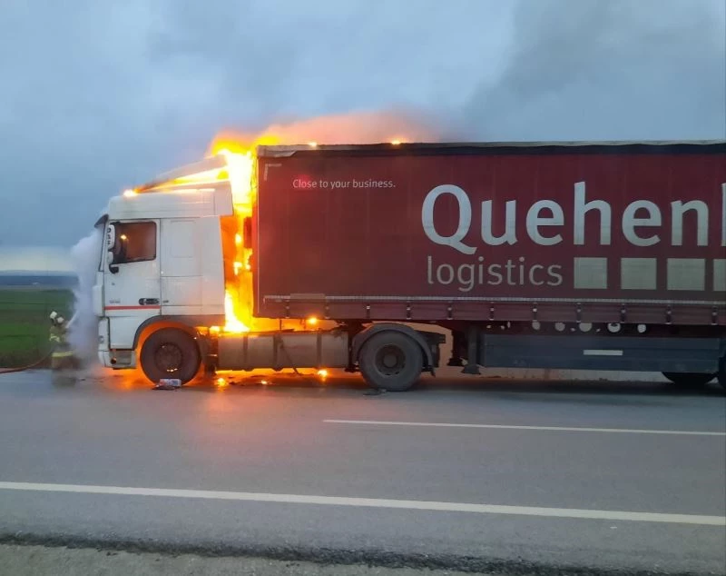 İtfaiyenin kısa sürede söndürdüğü yangında; tırda maddi hasar meydana gelirken yangının çıkış sebebi ile ilgili incelemenin başlatıldığı öğrenildi.
