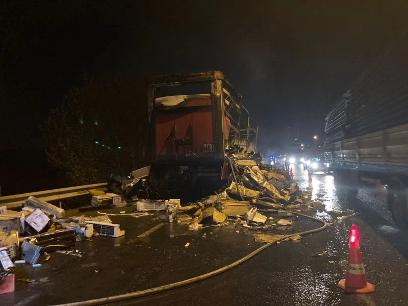 Balıkesir’de seyir halindeki tırın dorsesinde çıkan yangın korkuya neden oldu.