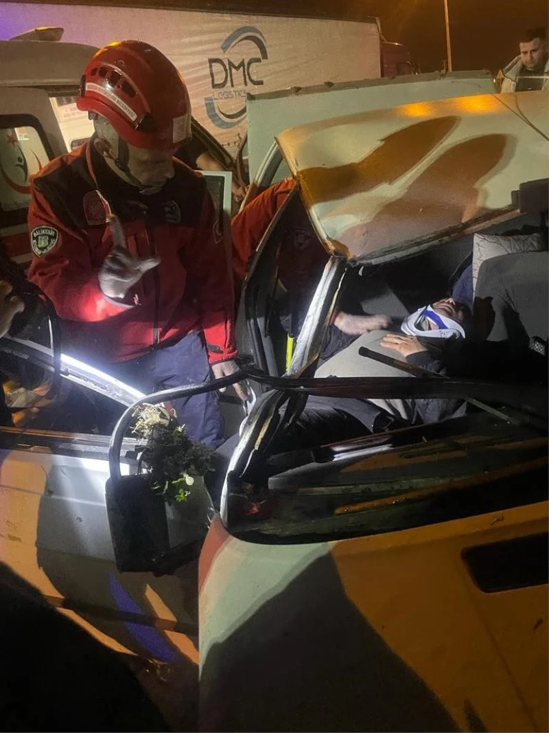 Balıkesir’in Burhaniye ilçesinde tırla çarpışan otomobilin içinde sıkışan sürücüyü itfaiye kurtardı.
