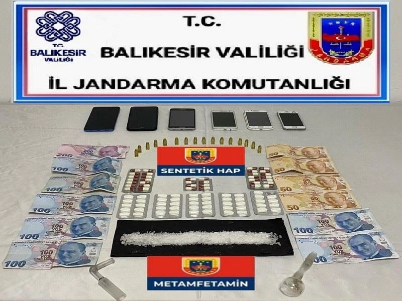 Edinilen bilgiye göre, Balıkesir İl Jandarma Komutanlığı ekipleri, uyuşturucu madde imal ve ticaretine yönelik yapılan istihbari çalışmalar neticesinde, Bigadiç ilçesinde uyuşturucu madde ticareti yaptıkları tespit edilen 6 şüphelinin ikamet adreslerinde arama yaptı. Yapılan aramalarda; 50 gram metamfetamin, 85 adet sentetik uyuşturucu hap, 2 adet uyuşturucu kullanma aparatı, 6 adet cep telefonu, 16 adet tabanca fişeği ve suçtan elde edilen gelir olarak 2 bin TL ele geçirildi. Olayla ilgili olarak 6 şüpheli gözaltı alındı.