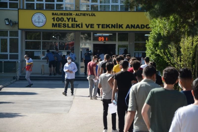 Türkiye’de 2 milyonu aşkın öğrencinin girdiği YKS sınavı Balıkesir’de de yapıldı. 100. Yıl Mesleki ve Teknik Anadolu Lisesi’nde salona girmek isteyen öğrenciler okul dışında aileleri ile vedalaştıktan sonra okul bahçesinde sıraya girdi. Üzerinde metal eşyaları ve kemer gibi aksesuarları olan öğrenciler sınav salonuna alınmadı. Sosyal mesafenin de zaman zaman ihmal edildiği sıra sonunda kontrolleri tamamlanan öğrenciler sınıflara çıkarak sınav heyecanını yaşamaya başladı.
