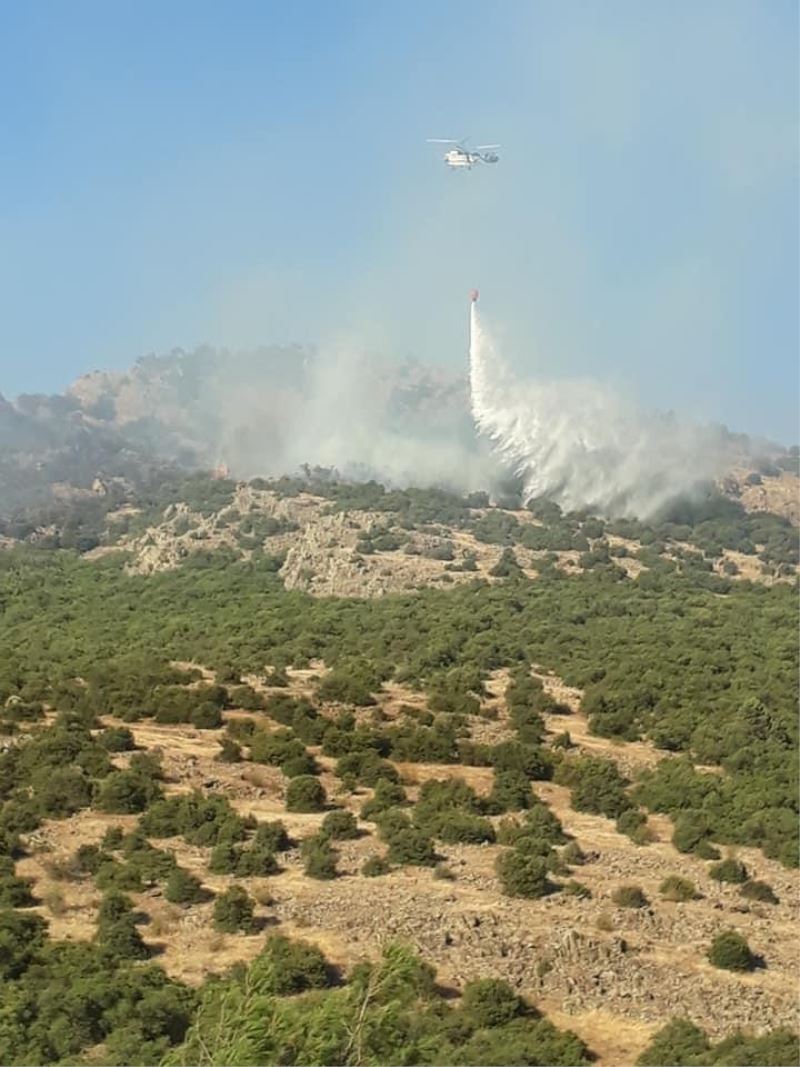 Balıkesir’in Kepsut ilçesine bağlı Eyüpbükü Mahallesi çıkan orman yangınına 5 helikopterle müdahale edildi. Yangının büyümesi ve akşam saati olması sebebiyle helikopterlerin müdahalesi durdurulurken, bölgeye dozerlerle girilmeye çalışılıyor.