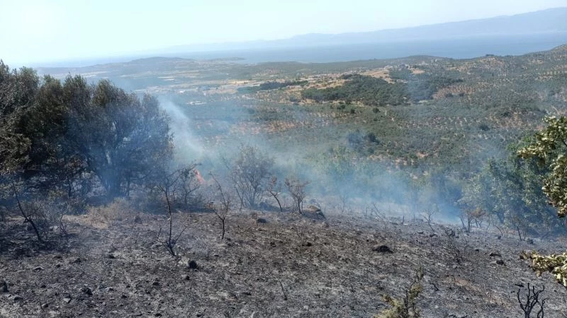 Balıkesir’deki zeytinlik yangınına havadan müdahale edildi