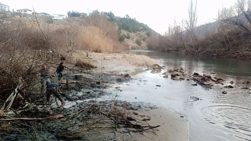İtfaiye erleri, Kelkit çayında kuraklık sonucu susuz kalan balıkları kurtarmak için için seferber oldu.