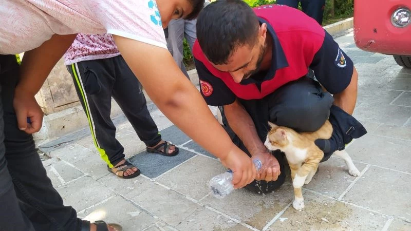 Şanlıurfa’nın tarihi ve turistik mekanları arasında yer alan Balıklıgöl’de ağaçta mahsur kalan kedi, itfaiye tarafından kurtarıldı.