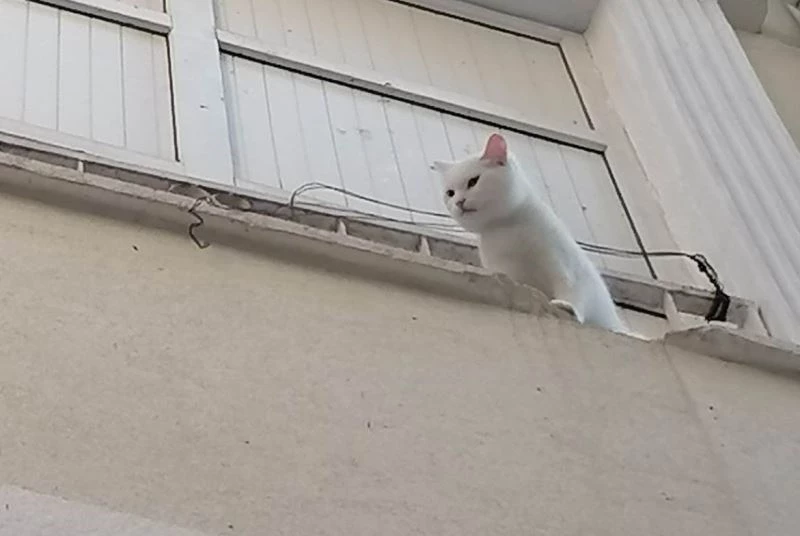 350 Evler Mahallesi Türbe Sokak’ta bulunan bir apartmanın 1. katındaki dairenin balkon demirlerine bir kedinin sıkıştığını fark eden apartman sakinleri kendi çabaları ile kediyi kurtaramayınca durumu itfaiye ekiplerine bildirdi. Olay yerine gelen Nevşehir Belediyesi İtfaiye Müdürlüğü ekipleri, balkona yangın merdiveni uzatarak mahsur kalan kediyi kurtardı.